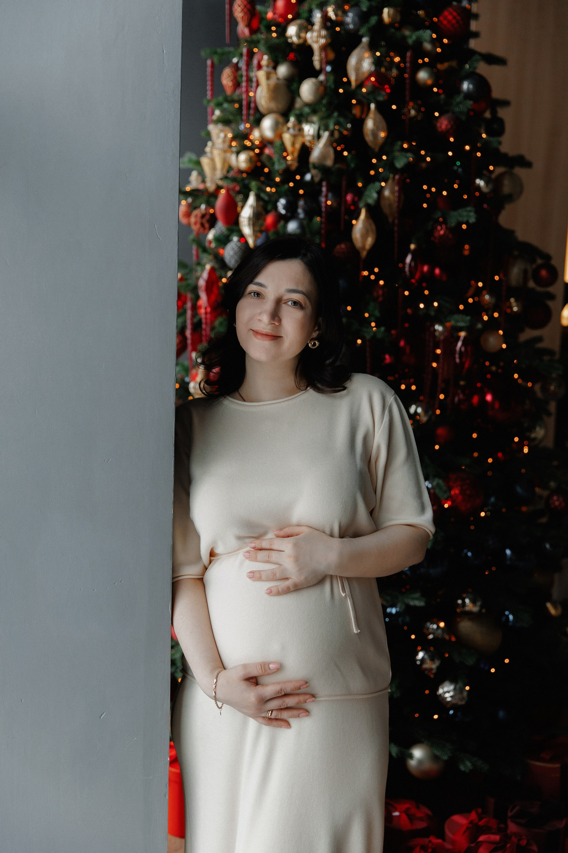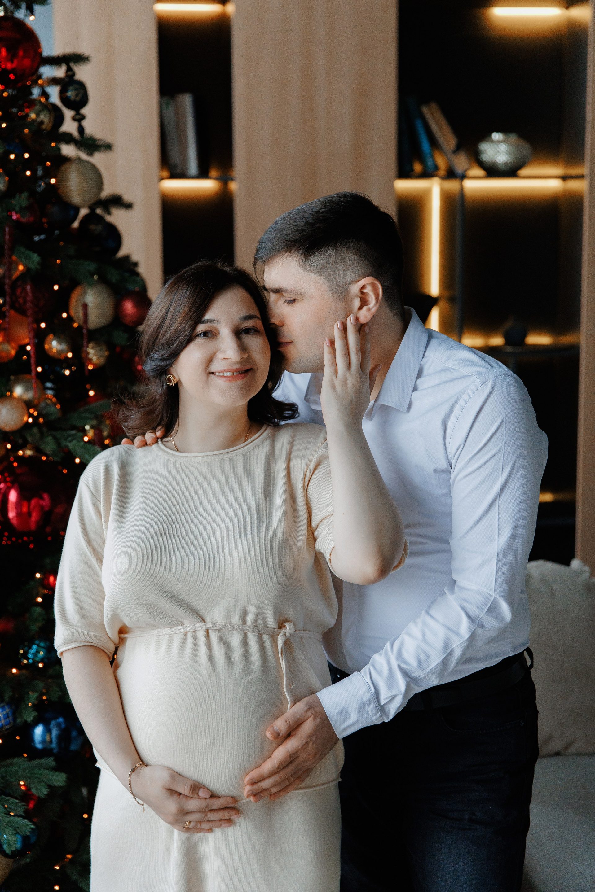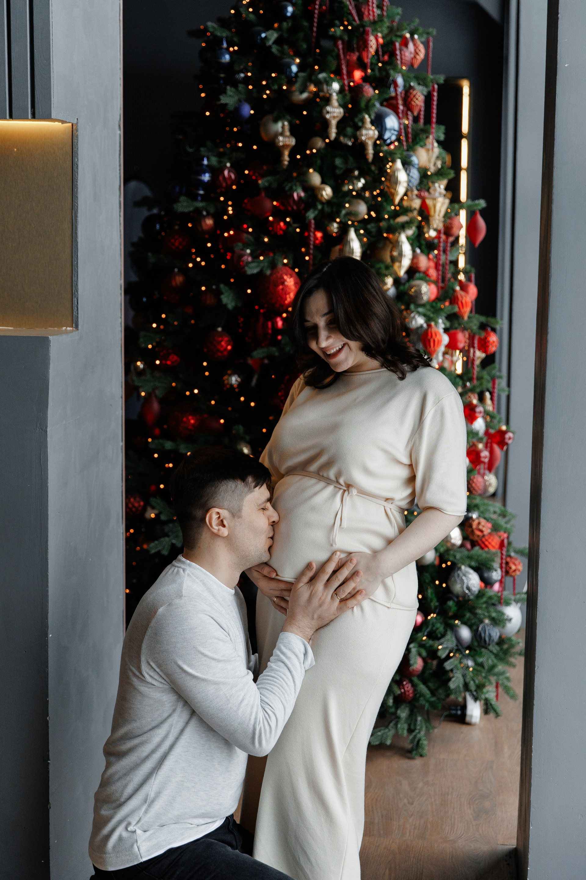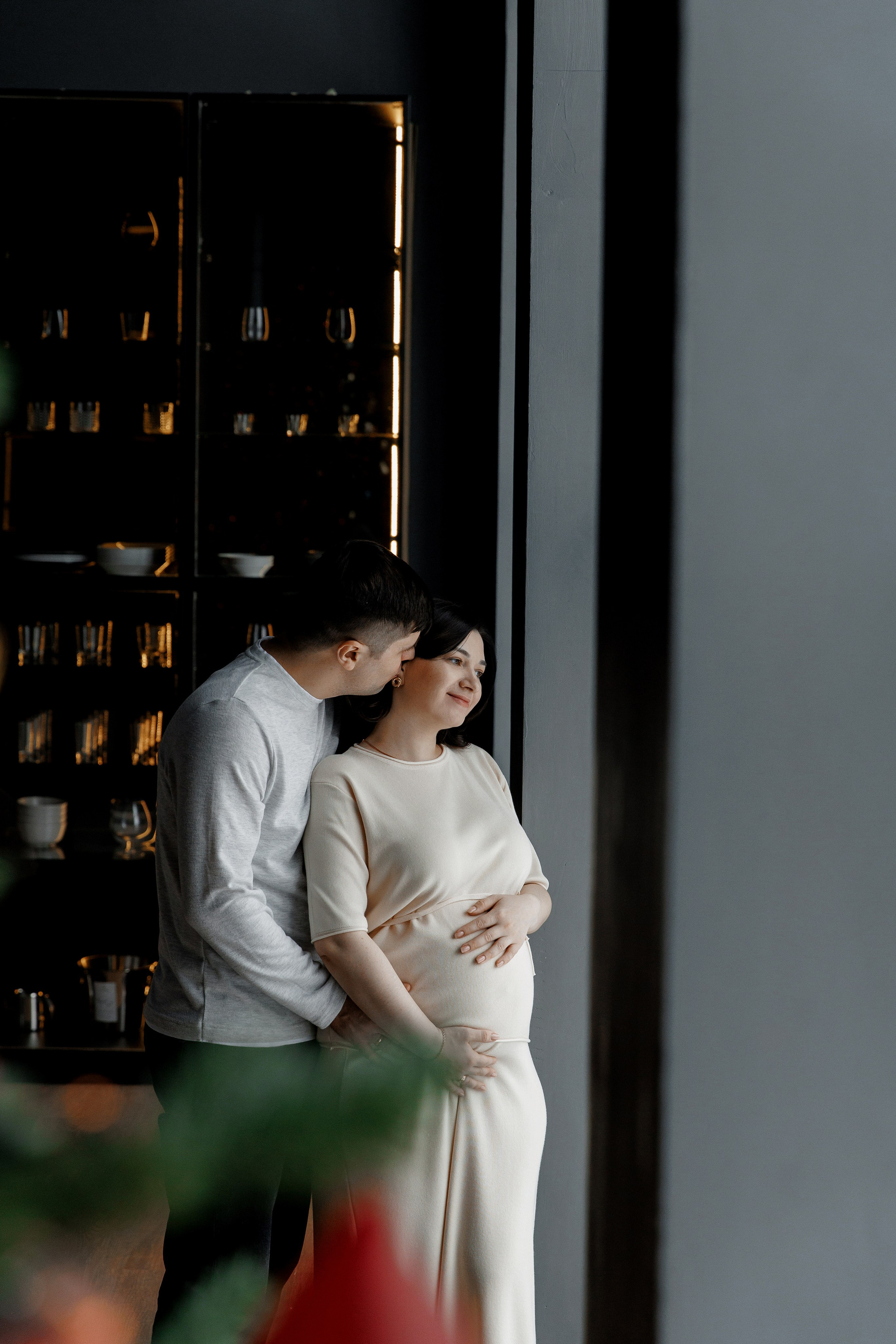 Фотосессия беременности в студии с проектором